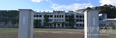 | 15時半過ぎ、海岸線に到達した津波が数分後に学校に達し、校舎は高さ約1.8mほどの津波に襲われた。 | 津波で流されてきた自動車や家屋が校舎に衝突し、車両などから出火して津波火災が発生。火の手は校舎の3階まで達し、校舎は炎に包まれる事態になった。 |