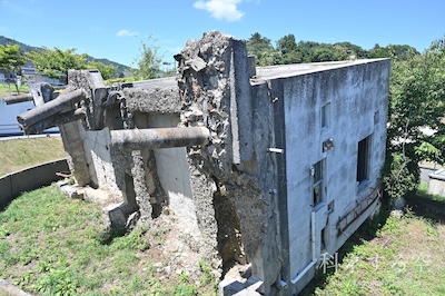 この場所にあるモニュメントの数字「13.8m」は、その時の津波の実測高さを示しています。 かさ上げして建てられた2階建ての役場も、ほぼ完全に水没してしまったのです。